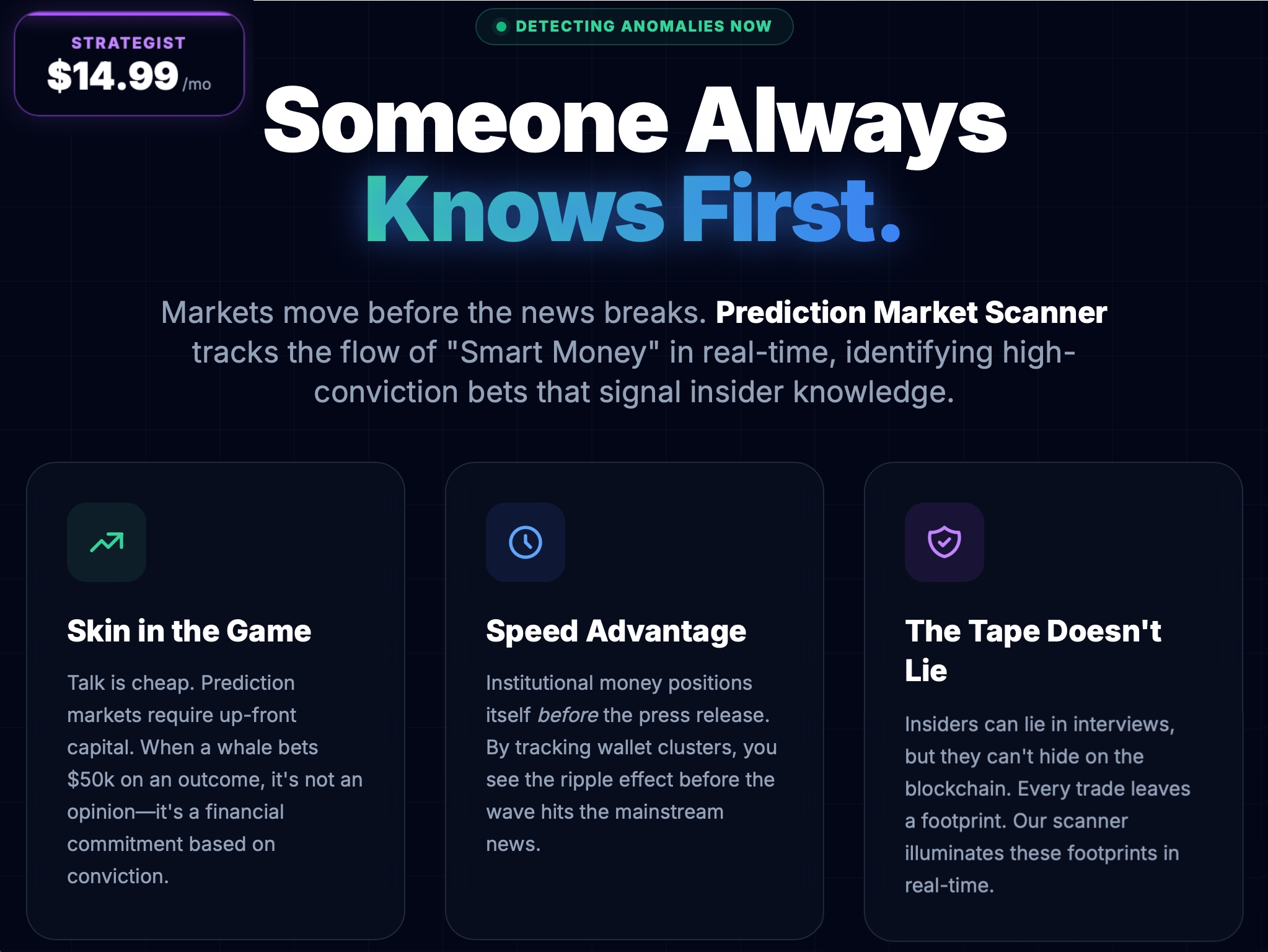 Manual monitoring is a losing game. By the time you see a price spike on the front page, the insiders have already positioned themselves. The Prediction Market Scanner bridges the gap between observation and action.